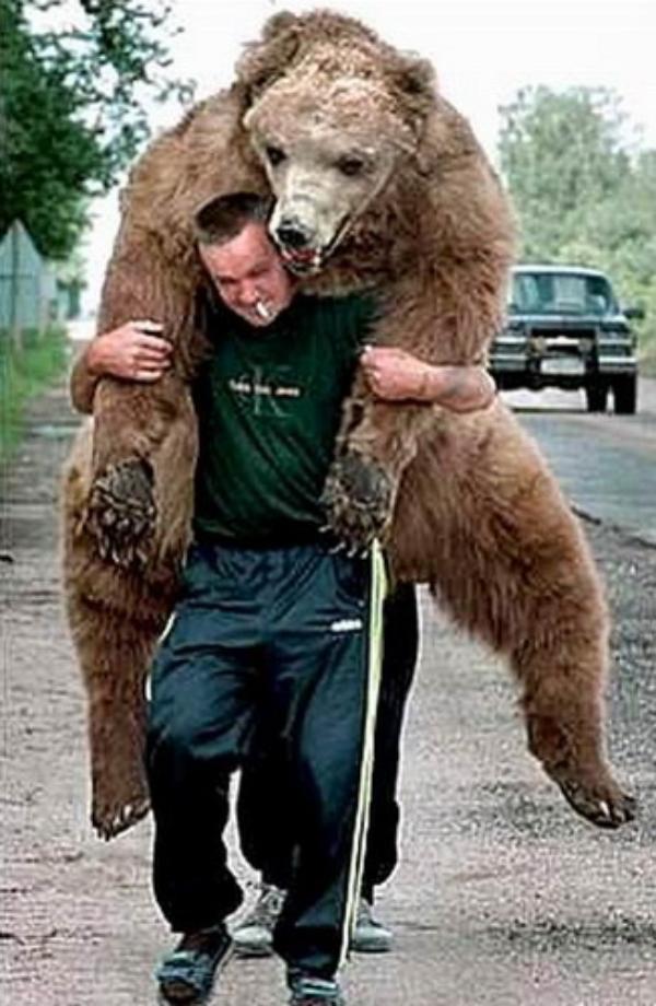 Удушающий сзади против медведя работает на 101%, спереди похуже — всего 10% из ста)
